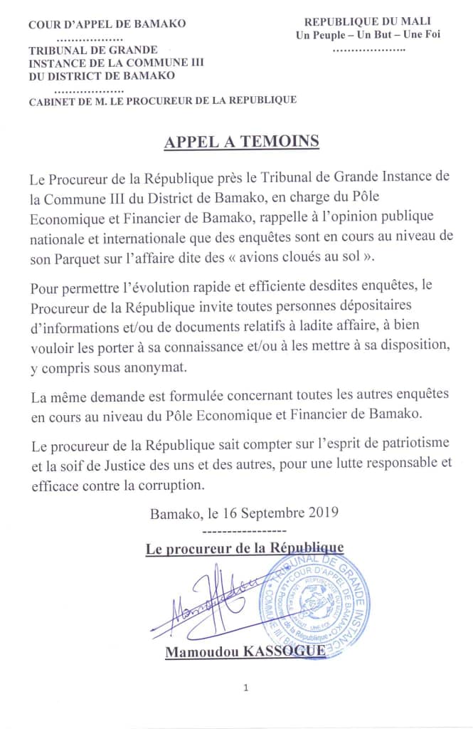 A LA UNE Affaire des avions cloués au sol, le procureur lance un appel à témoins By La redaction On Sep 17, 2019 0 Share Partager :Cliquer pour imprimer(ouvre dans une nouvelle fenêtre)Continue Reading 0 Share FacebookTwitterGoogle+ReddItWhatsAppPinterestCourriel