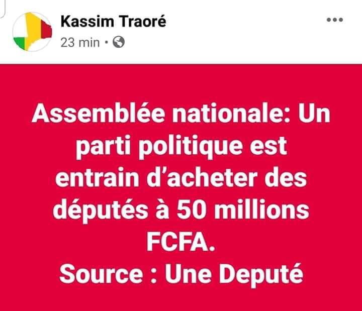 Les mauvaises habitudes ont la peau dure. A peine ils sont élus, les nouveaux députés sont déjà sur le marché. Le prix va jusqu’à 50 millions selon un post du journal Kassim Traoré.
