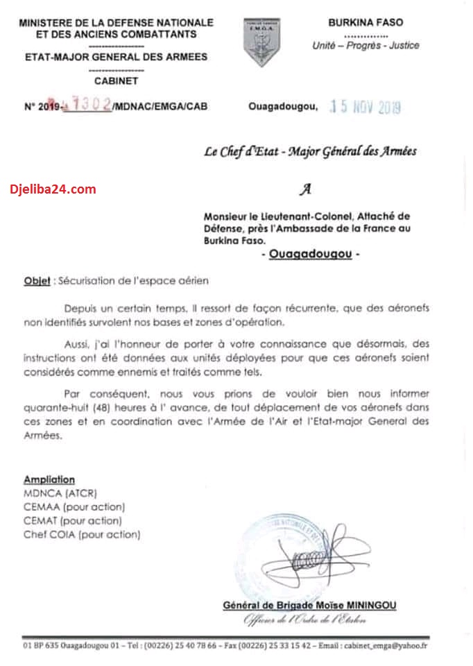Brukina: l’Etat-Major prend ses responsabilités, tout avion non identifié sera traité comme «ennemis»