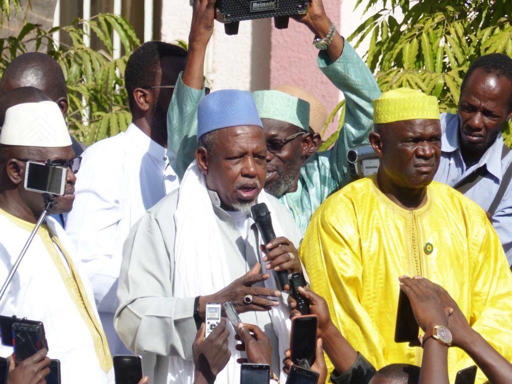 Le message de ce dernier sera attendu, des milliers de partisans de l’Imam ont convergé ce dimanche vers le Palais de la Culture. Là, ils trouvent les portes bouclées et les gardiens absents. Certains se décident à enfoncer les portes. Cela coïncide avec l’arrivée de l’Imam Dicko qui appelle au calme. C’est donc dans la cour que le meeting se tient. Des policiers arrivés plus tard ont été empêchés d’entrer dans la cour. Ils partiront très vite, lapidés par des partisans très remontés.