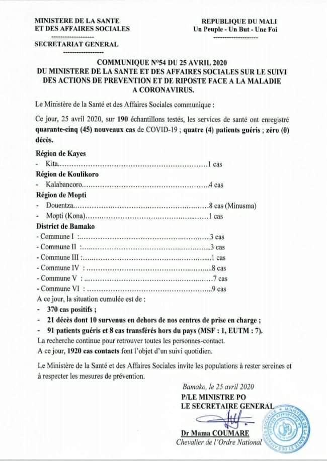 Petite UneSanté - Sexo Covid-19: 45 nouveaux cas confirmés, ce samedi, au Mali By La redaction Last updated Avr 25, 2020 0 Share Partager :Cliquer pour imprimer(ouvre dans une nouvelle fenêtre)Continue Reading 0 Share FacebookTwitterGoogle+ReddItWhatsAppPinterestCourriel