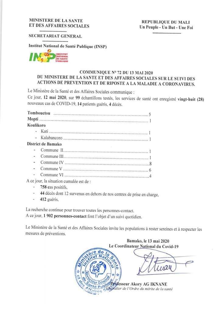 Santé - SexoPetite Une Covid-19 au Mali: 28 nouveaux cas confirmés, 05 à Tombouctou, 08 commune IV… By La redaction On Mai 13, 2020 0 Share Partager :Cliquer pour imprimer(ouvre dans une nouvelle fenêtre)Continue Reading 0 Share FacebookTwitterGoogle+ReddItWhatsAppPinterestCourriel