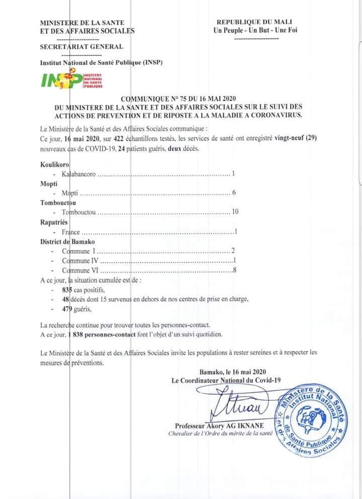 Santé - SexoA LA UNE Covid-19 au Mali: 29 nouveaux cas confirmés ce samedi By La redaction On Mai 16, 2020 0 Share Covid-19 au Mali: 29 nouveaux cas confirmés ce samedi Partager :Cliquer pour imprimer(ouvre dans une nouvelle fenêtre)Continue Reading 0 Share FacebookTwitterGoogle+ReddItWhatsAppPinterestCourriel