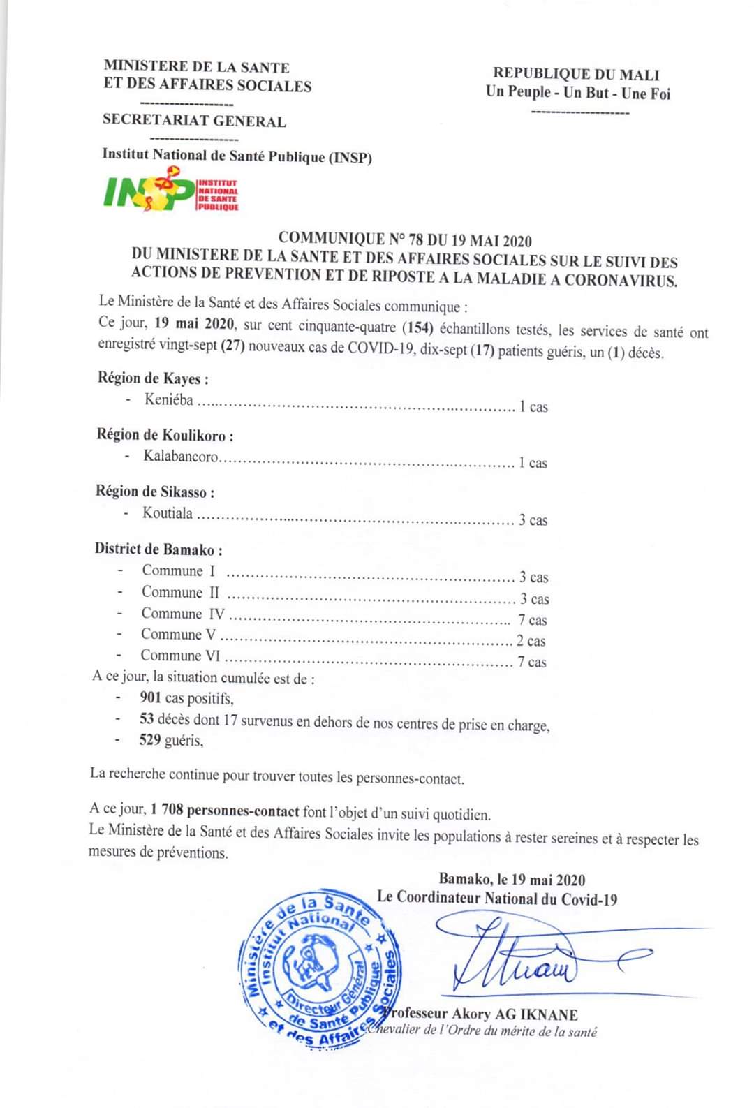 Santé - Sexo Covid19 au Mali : 27 nouveaux cas enregistrés, ce mardi By La redaction On Mai 19, 2020 0 Share Partager :Cliquer pour imprimer(ouvre dans une nouvelle fenêtre)Continue Reading 0 Share FacebookTwitterGoogle+ReddItWhatsAppPinterestCourriel