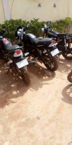 Bravo au commissariat de kalaban coro en général et au commissaire Mahamadou Mounkoro et ses hommes en particulier pour l’arrestation des neuf braqueurs Nigériens .Ces braqueurs avaient pour mission de braquer les personnes ayant fait des retraits d’argent à la banque .les apaches que vous voyez sur la photo appartiennent à ses malfrats , ils ont pour mission de suivre les gens avec ses apaches noirs s’ils arrivent à côté de ce dernier ils lui retirent son sac.Deuxièmement si la personne circule avec une voiture ils essayeront de briser la vitre de la voiture afin de s’emparer avec votre argent. Donc faite beaucoup attention lors de vos retraits d’argent à la banque,car ses gens là sont des spécialistes à la matière. Merci