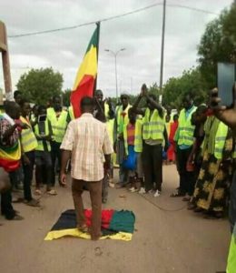 Les manifestants, majoritairement jeunes, ont à leur tour brûlé le drapeau de la république fantomatique de l’azawad. Un pays imaginaire que certains frères égarés tentent d’imposer au peuple de Modibo keita à travers de profanations de symboles de l’État du Mali.