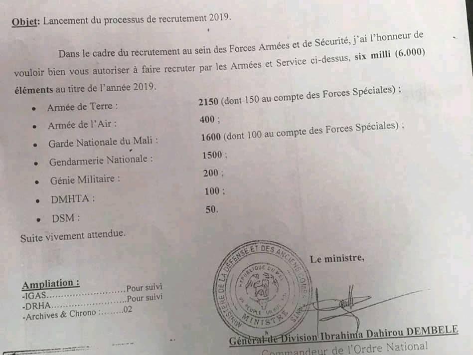A LA UNEBUZZSécurité Mali: Bientôt, 6 000 recrues dans l’armée. Voici les détails By La redaction On Mai 31, 2019 0 Share Partager :Cliquer pour imprimer(ouvre dans une nouvelle fenêtre)Continue Reading 0 Share FacebookTwitterGoogle+ReddItWhatsAppPinterestCourriel