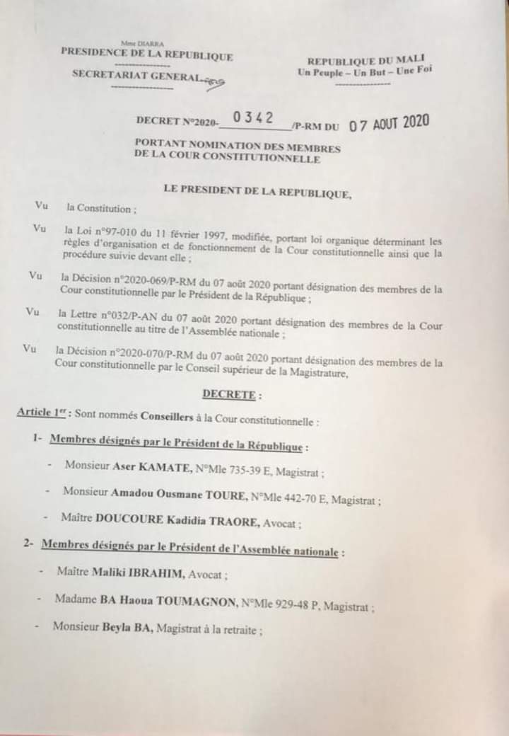 Mali [ Exclusif]: Voici les noms des 09 nouveaux membres de la Cour constitutionnelle