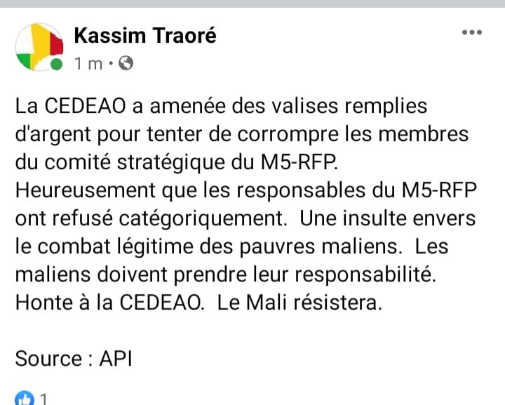 […] »»Lire aussi: Mali: La CEDEAO accusée de tentative de corruption des leaders du M5-RFP […]