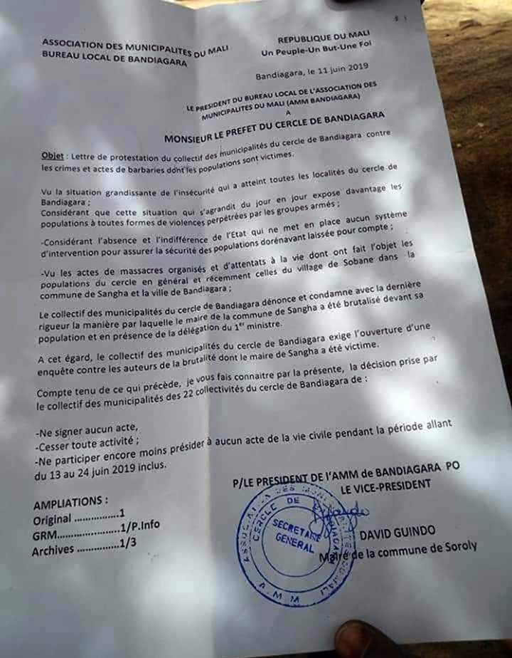 les maires protestent contre la brutalité dont fait l’objet du maire de Sangha lors de la visite du 1 er premier à Sobame da.