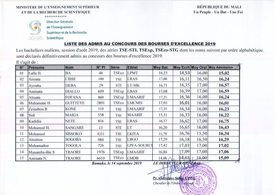 Sur le Net Mali: Liste Admis Concours Bourse d’excellence 2019 By La redaction On Sep 15, 2019 0 Share Partager :Cliquer pour imprimer(ouvre dans une nouvelle fenêtre)Continue Reading 0 Share FacebookTwitterGoogle+ReddItWhatsAppPinterestCourriel