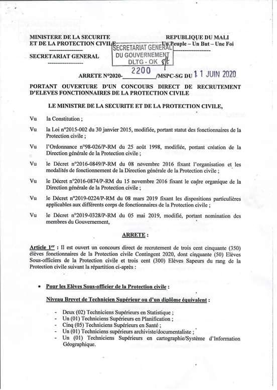 Mali: Recrutement de 350 Sapeur-pompiers 2020. Voici tous les détails (dossiers, grade, région….)