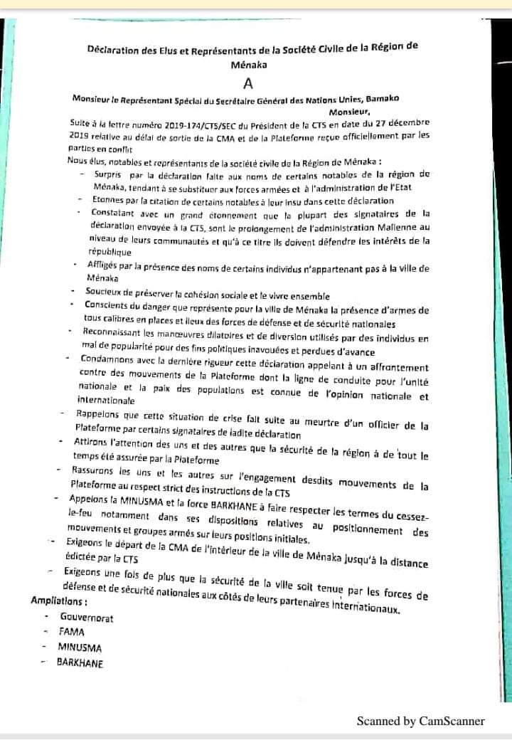 Nous élus, notables et représentants de la société civile de la Région de Ménaka :
