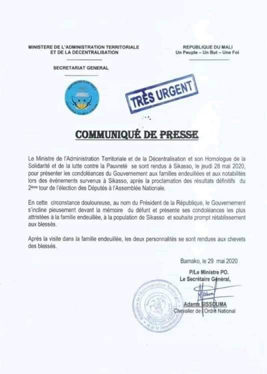 BUZZSur le Net Mort d’un manifestant à Sikasso, le Gouvernement dépêche deux ministres pour calmer la situation By La redaction On Mai 31, 2020 0 Share Partager :Cliquer pour imprimer(ouvre dans une nouvelle fenêtre)Continue Reading 0 Share FacebookTwitterGoogle+ReddItWhatsAppPinterestCourriel